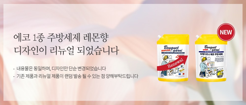 | 품명 및 모델명 | 부케가르니 에코 주방세제 레몬향 | 인증/허가 사항 | 위생용품 |