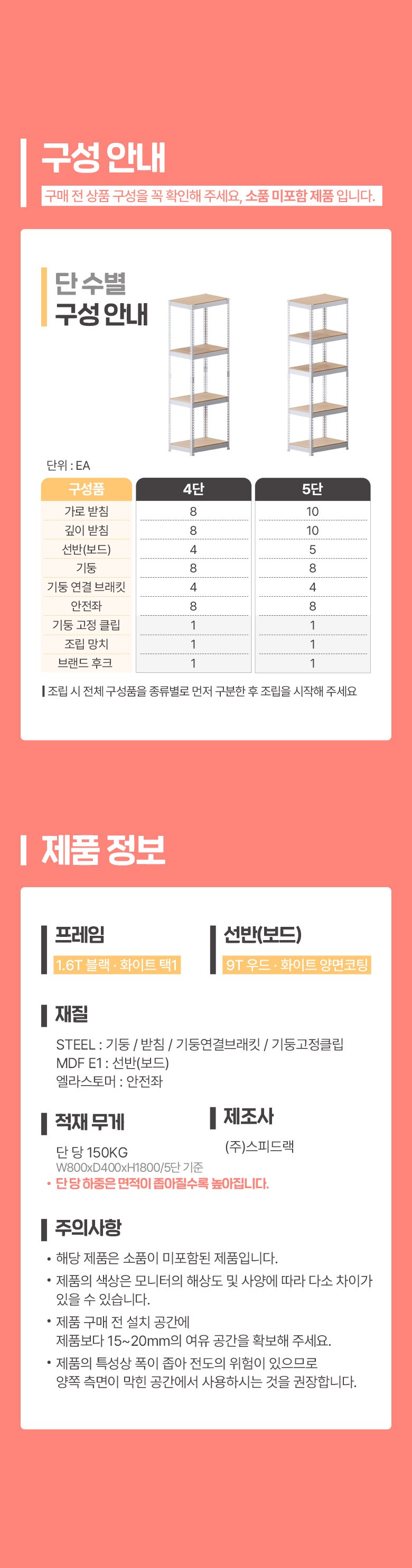 | 주요 소재 | 컨텐츠 참조 | 제조자(수입자) | (주)스피드랙 |
