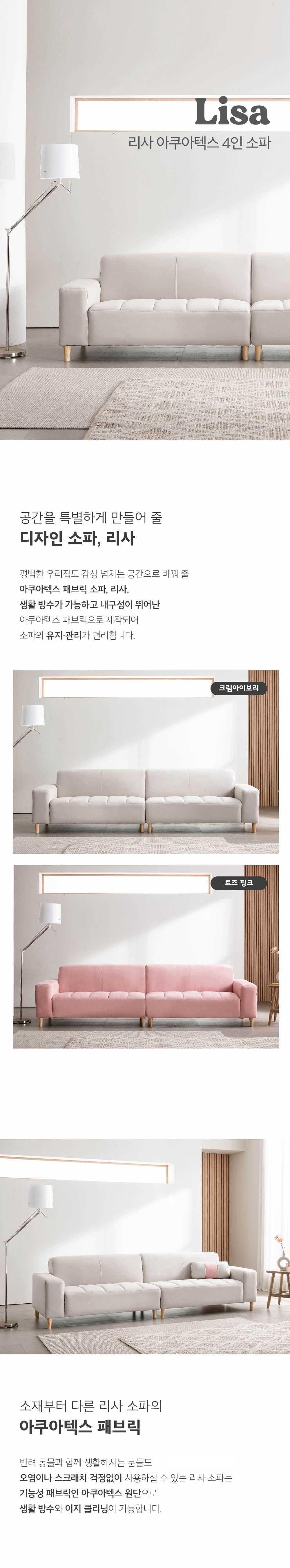 | 품명 | 우아미가구 리사 4인 아쿠아텍스 패브릭 소파+쿠션1p 방문설치 | KC 인증정보 | 업체미제공 |