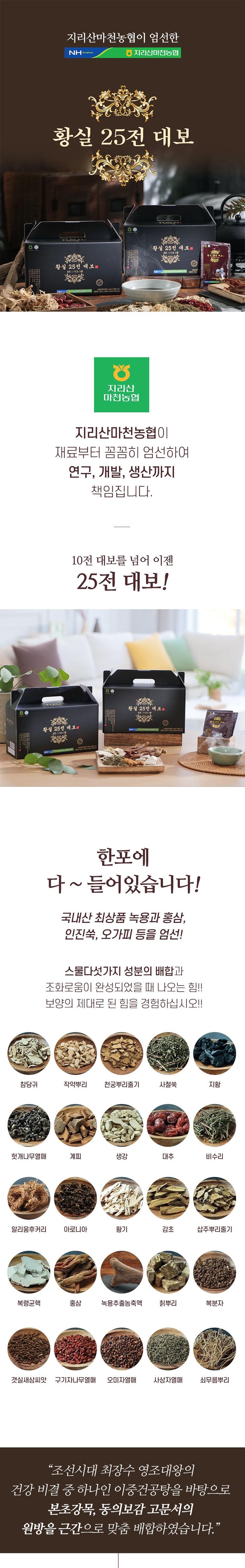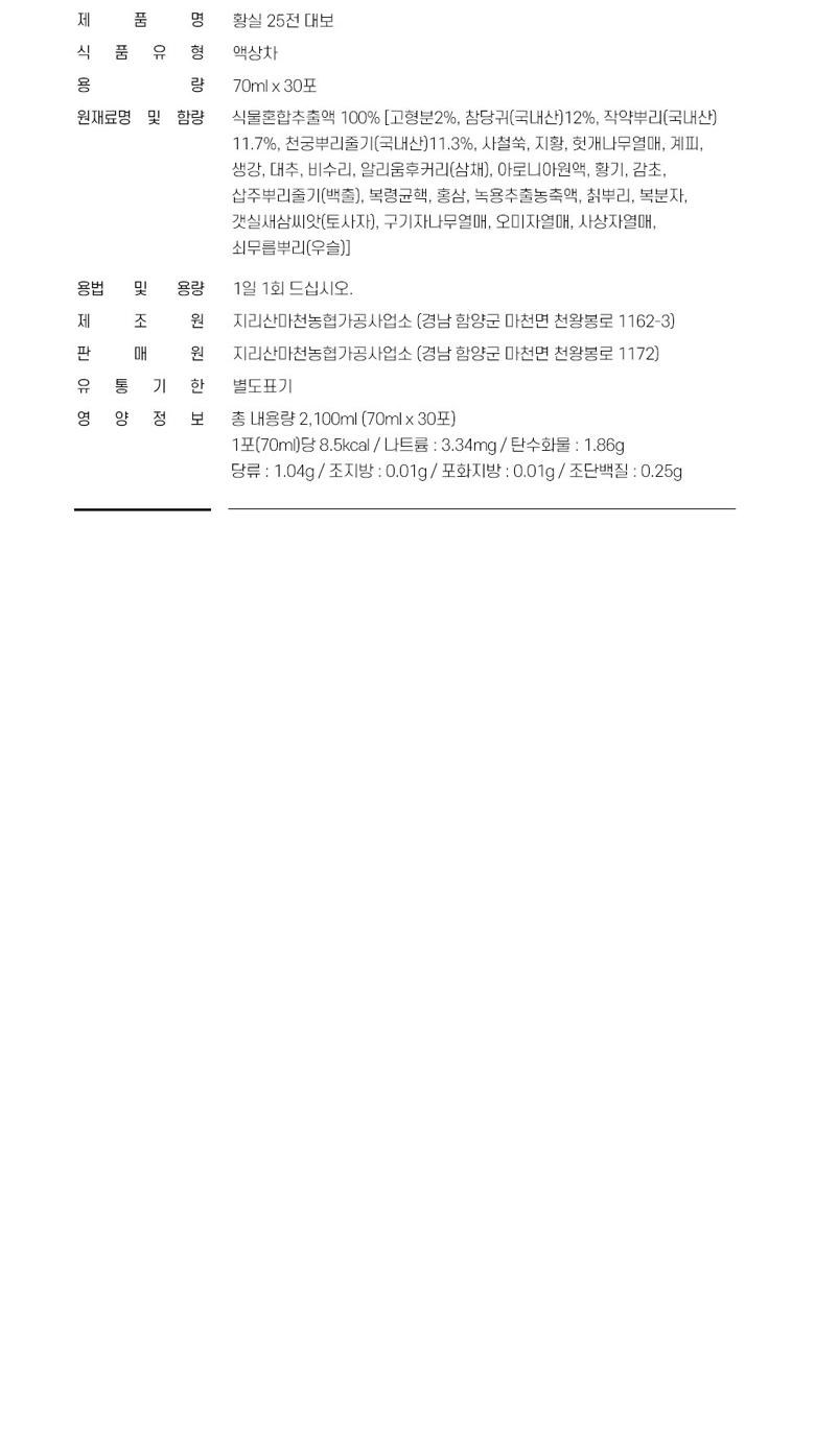 | 제품명 | 지리산 마천농협 황실 25전 대보 | 식품의 유형 | 상품 상세페이지 참조 |