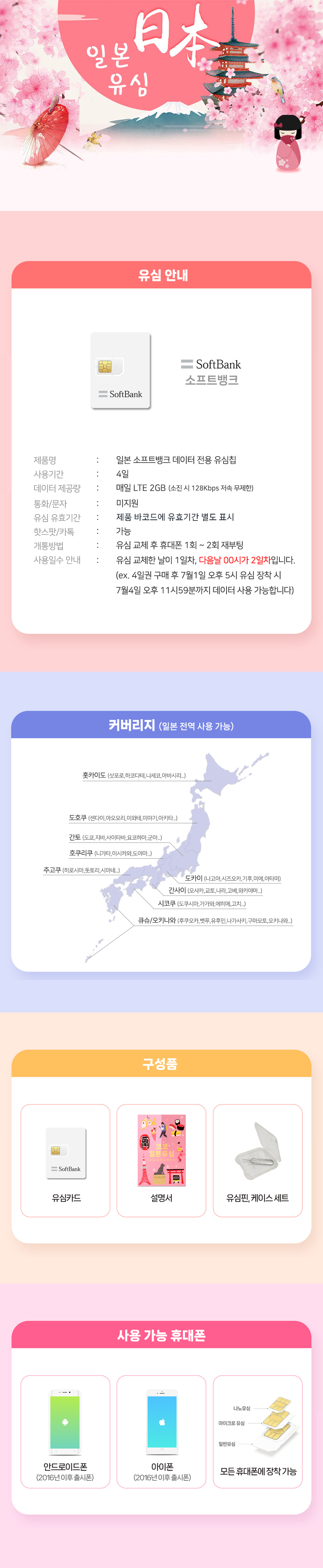 | 품명 및 모델명 | 소프트뱅크 일본 코코 데이터 전용 유심칩 | 인증/허가 사항 | 해당없음 |
