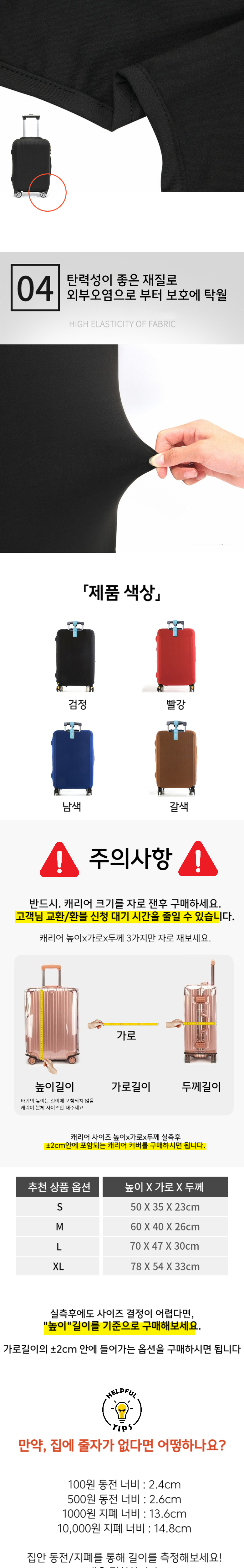 | 제조국 | 중국 | 취급시 주의사항 | 플라스틱 캐리어 커버 전용 상품, 아이보리/ 흰색과 같은 캐리어는 사용 불가. 마찰로 이염이 생길 수 있음. 이염이 있을경우 책임져 드리지 않습니다 |