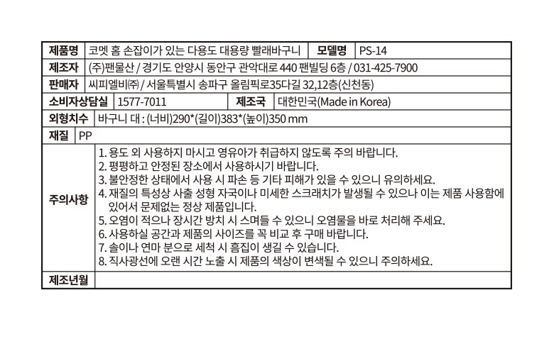 | 제조국(원산지) | 대한민국 | 제조자(수입자) | (주)팬물산 |