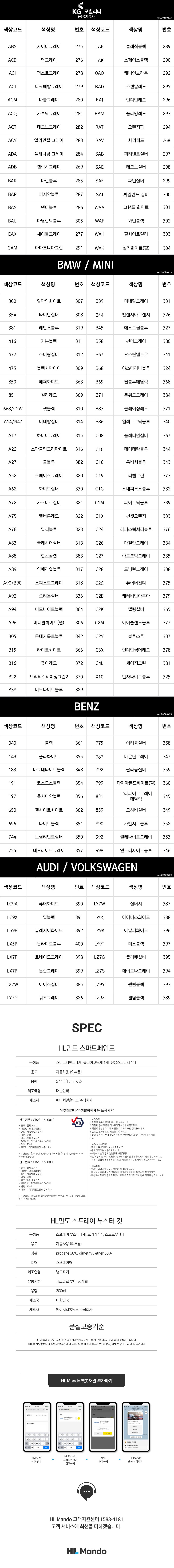 | 품목 및 제품명 | 물체 도색제/스마트페인트, 물체 도색제/ 클리어코팅제 | 용도(표백제의 경우 계열을 함께표시) 및 제형 | 자동차용(외부용) / 비분사형-펜형 |