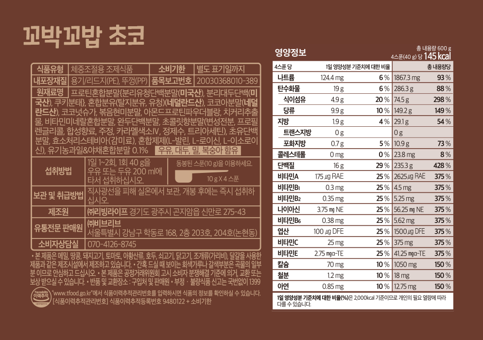 | 포장단위별 내용물의 용량(중량), 수량 | 컨텐츠 참조, 3개 | 원재료명 및 함량 | 컨텐츠 참조 |