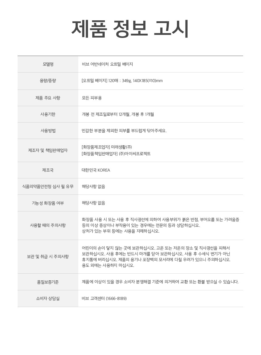 | 용량(중량) | 컨텐츠 참조 | 제품 주요 사양 | 모든 피부용 |