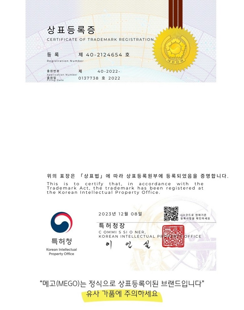 | 제조자(수입자) | 메고(MEGO) 협력업체 | 제조국 | 중국(OEM) |