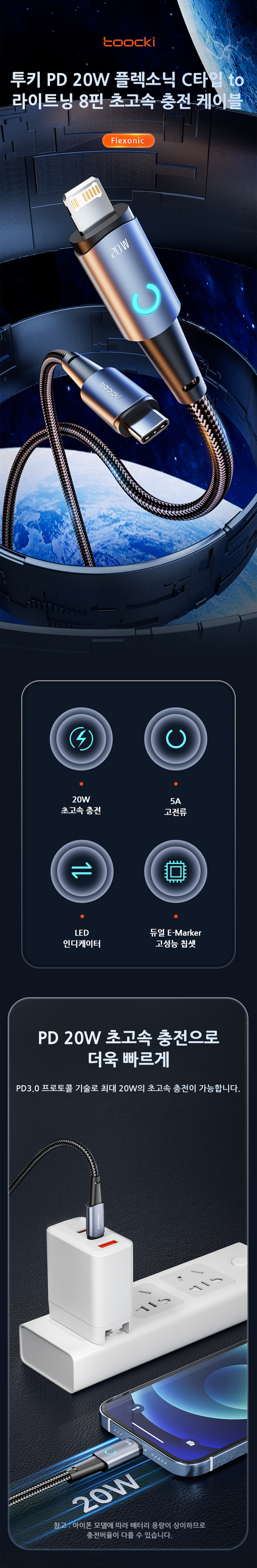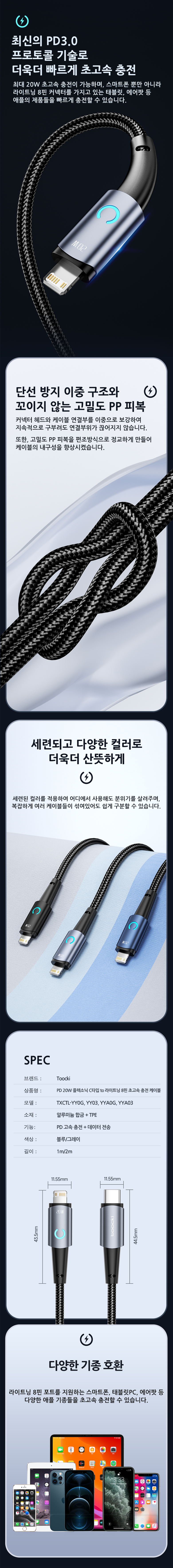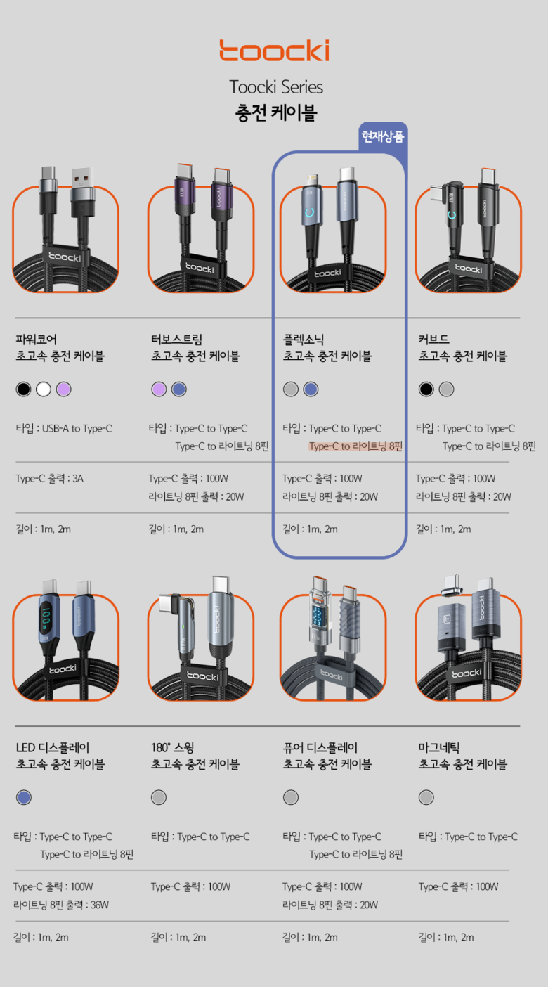 | 품명 및 모델명 | 투키 PD 20W 플렉소닉 C타입 to 라이트닝 8핀 초고속 충전 케이블 | 인증/허가 사항 | 해당없음 |
