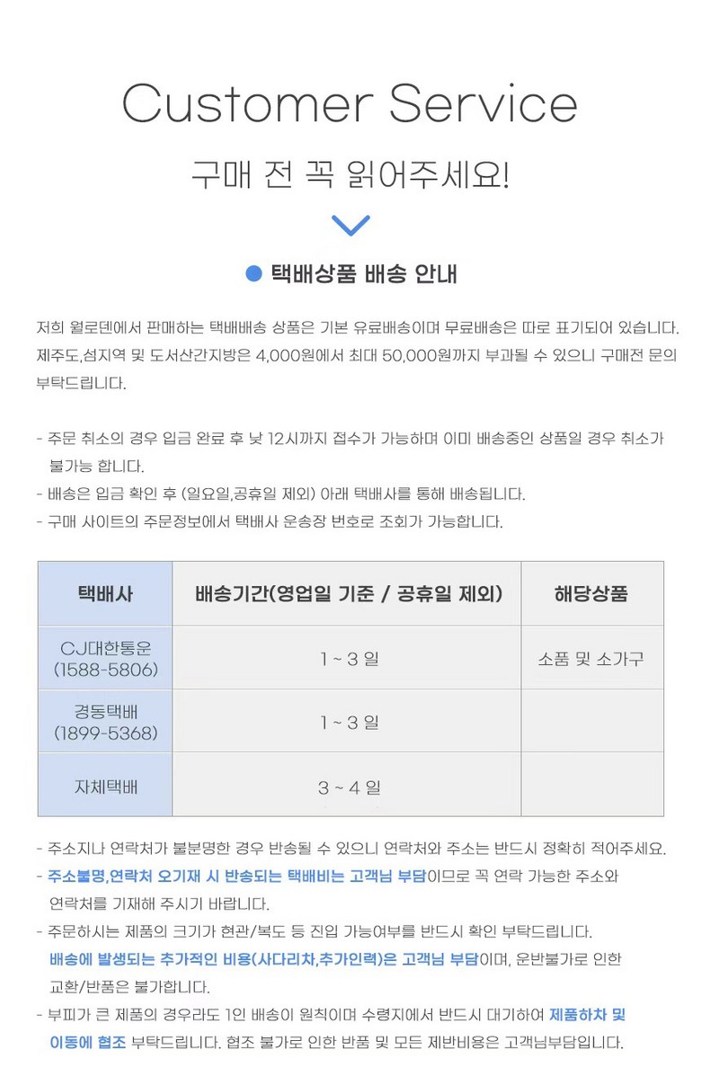 - ㆍ모니터 해상도의 차이로 인해 색상이나 이미지가 실제와 달라, 고객이 단순 변심으로 교환/반품을 무료로 요청하는 경우