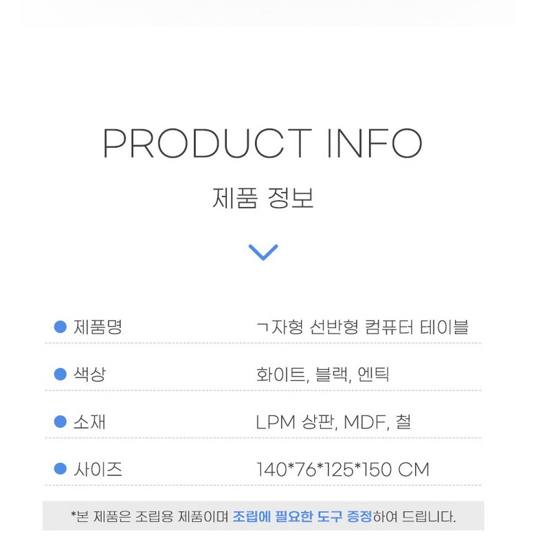 | 품명 | L자 책상 | KC 인증정보 | 상품 상세페이지 참조 |