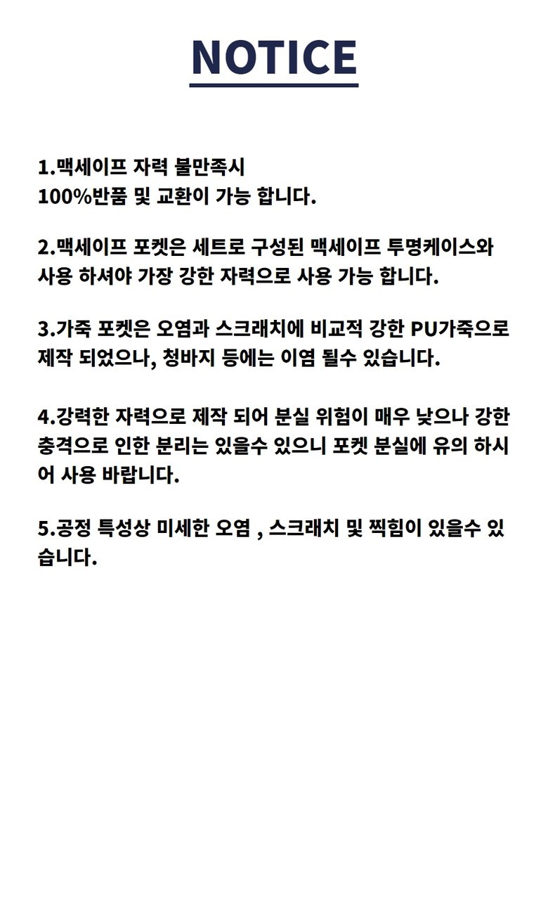 - ㆍ교환/반품에 관한 일반적인 사항은 판매자가 제시사항보다 관계법령이 우선합니다.