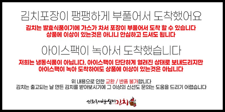 | 생산자 및 소재지 | 선화동매운실비김치(주)농업회사법인 / 대전광역시 중구 유등천동로 234, 1층(산성동) | 제조연월일, 소비기한 또는 품질유지기한 | 제조일로부터 20일까지(10℃이하 냉장보관 시) |