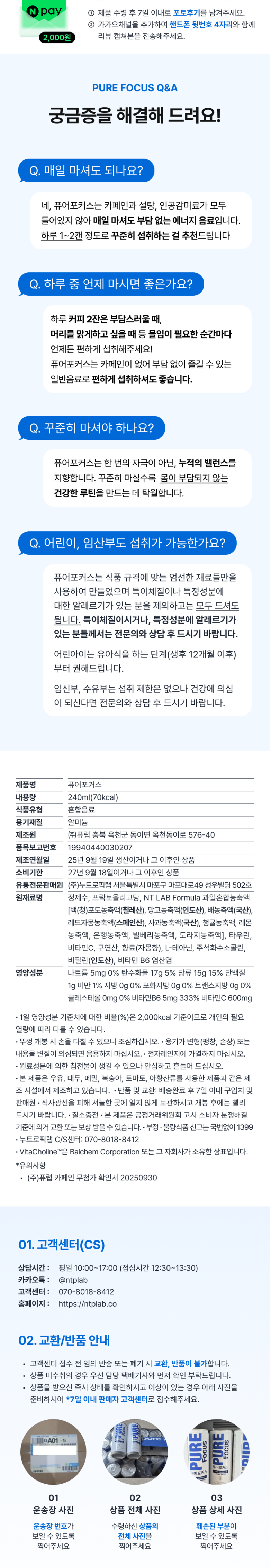 | 제품명 | 퓨어포커스 | 식품의 유형 | 혼합음료 |