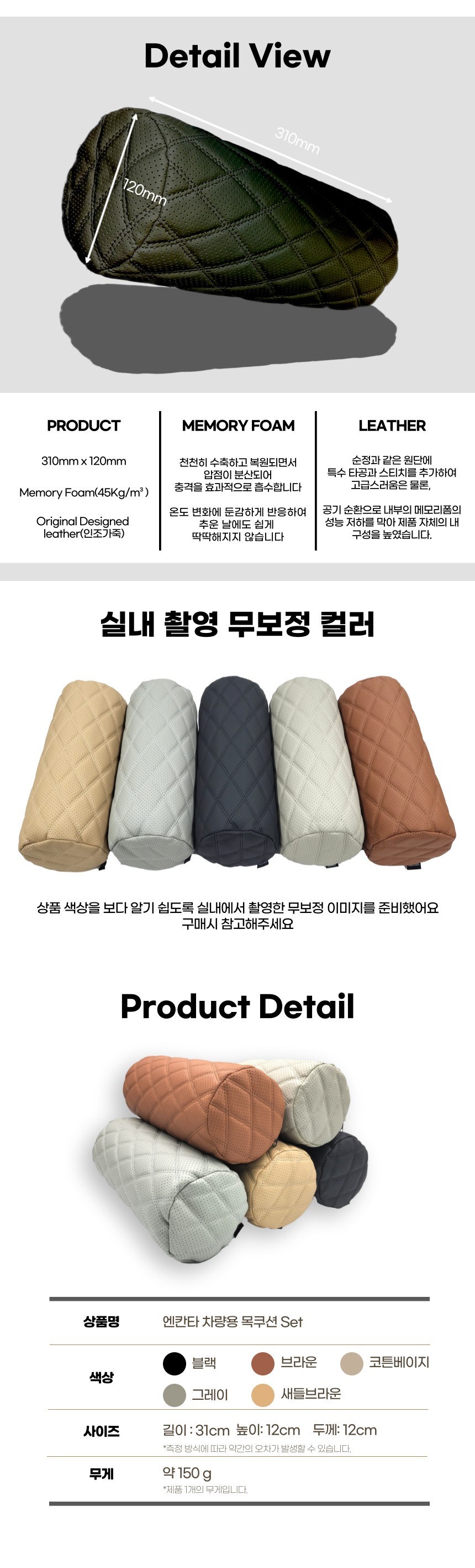 | 품명 및 모델명 | 엔칸타 차량용 가죽 메모리폼 목쿠션 2P | 동일모델 출시년월 | 2024년05월 |