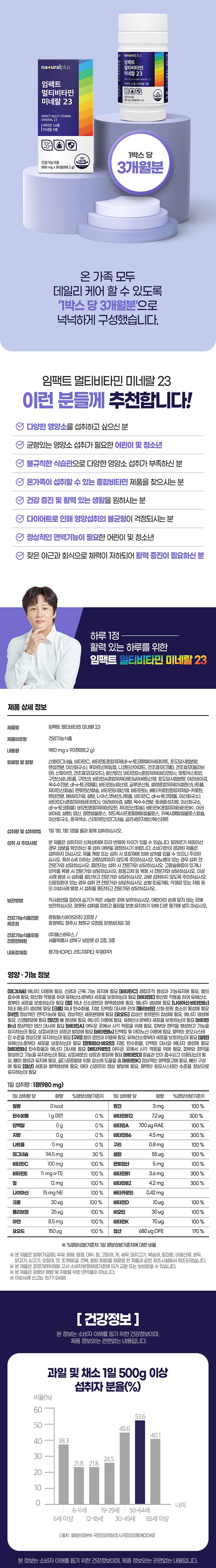 | 제품명 | 임팩트 멀티비타민 미네랄23 | 제조업소의 명칭과 소재지 | 컨텐츠 참조 |