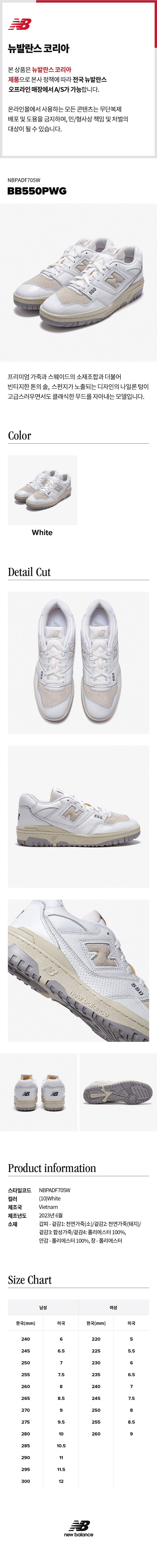 | 치수 | 컨텐츠참조 | 제조자(수입자) | New Balance Athletic Shoe, INC.,/(주)이랜드월드 뉴발란스 사업부 |