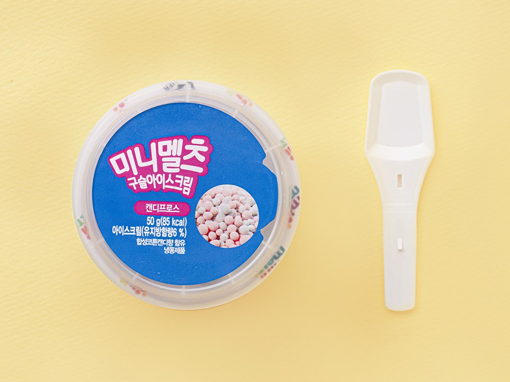 동글동글한 구슬 아이스크림, 미니멜츠 캔디프로스예요. 사랑스러운 색감은 보기만 해도 유원지에 온 듯한 느낌을 불러일으키죠. 특유의 쫀득한 식감이 일품이랍니다. 입안 가득 퍼지는 솜사탕처럼 부드럽고 달달한 맛으로 아이도, 어른도 행복한 간식 시간을 즐길 수 있을 거예요.