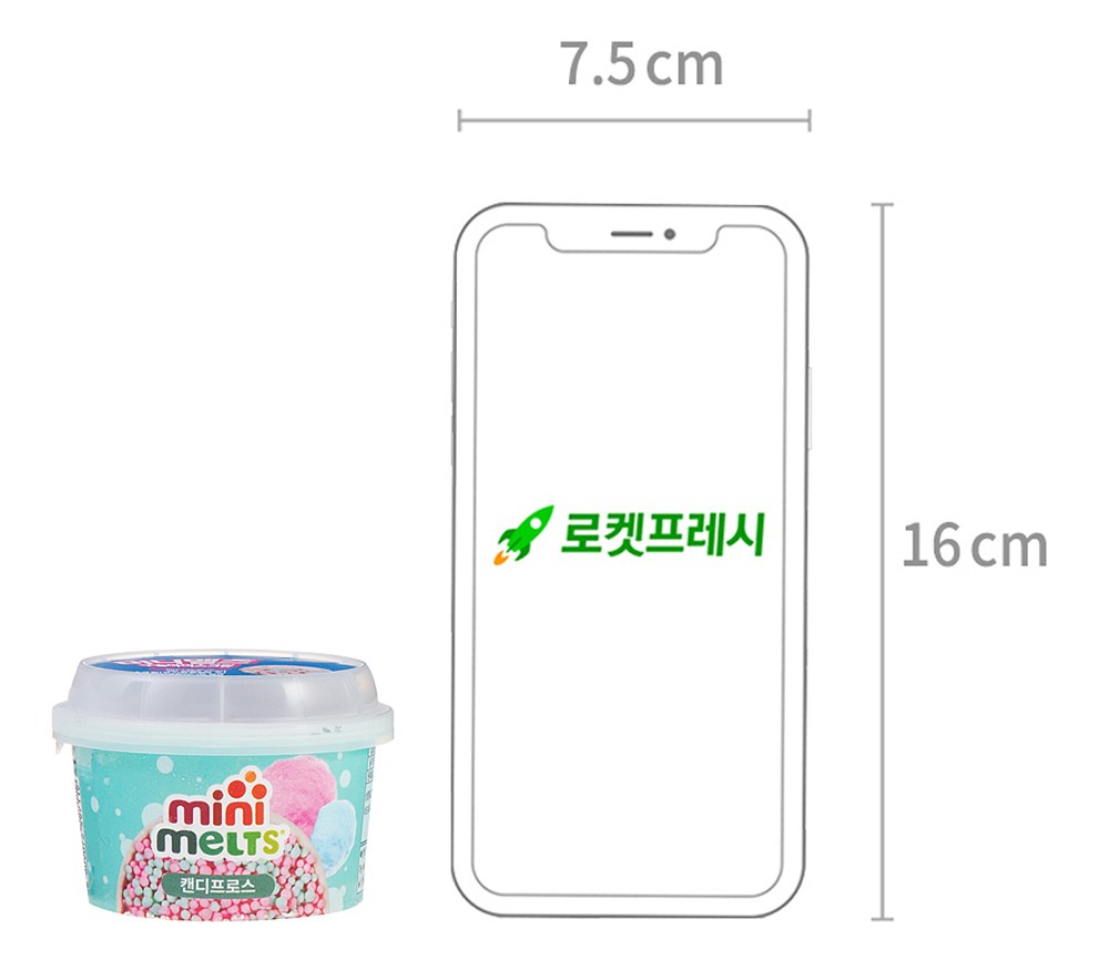 미니멜츠 캔디프로스와 스푼으로 구성되어 있습니다.