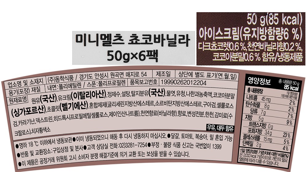 | 제품명 | 쵸코바닐라 | 식품의 유형 | 컨텐츠 참조 |
