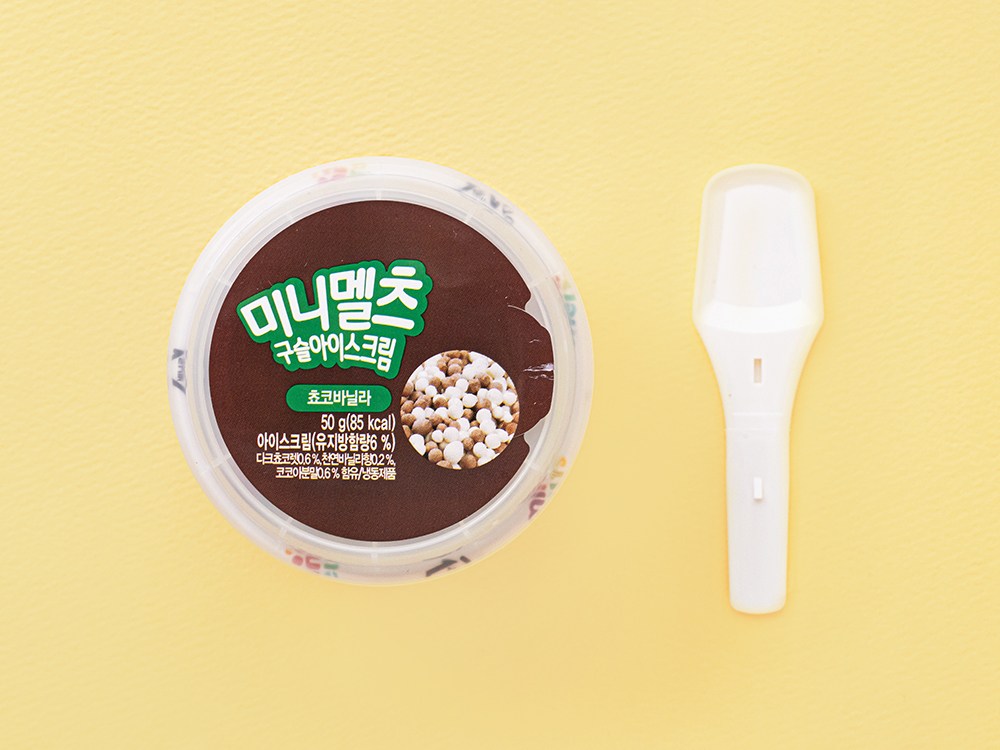 미니멜츠 쵸코바닐라와 스푼으로 구성되어 있습니다.