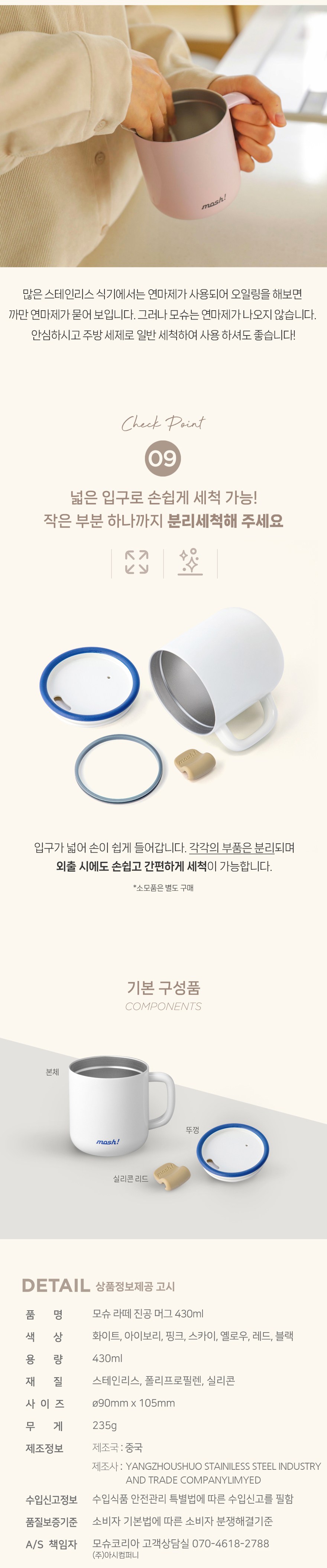 | 품명 및 모델명 | 모슈 라떼 진공 머그 | 재질 | 컨텐츠참조 |