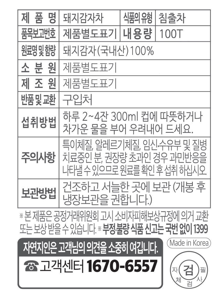 - 전통차 종류: 돼지감자차