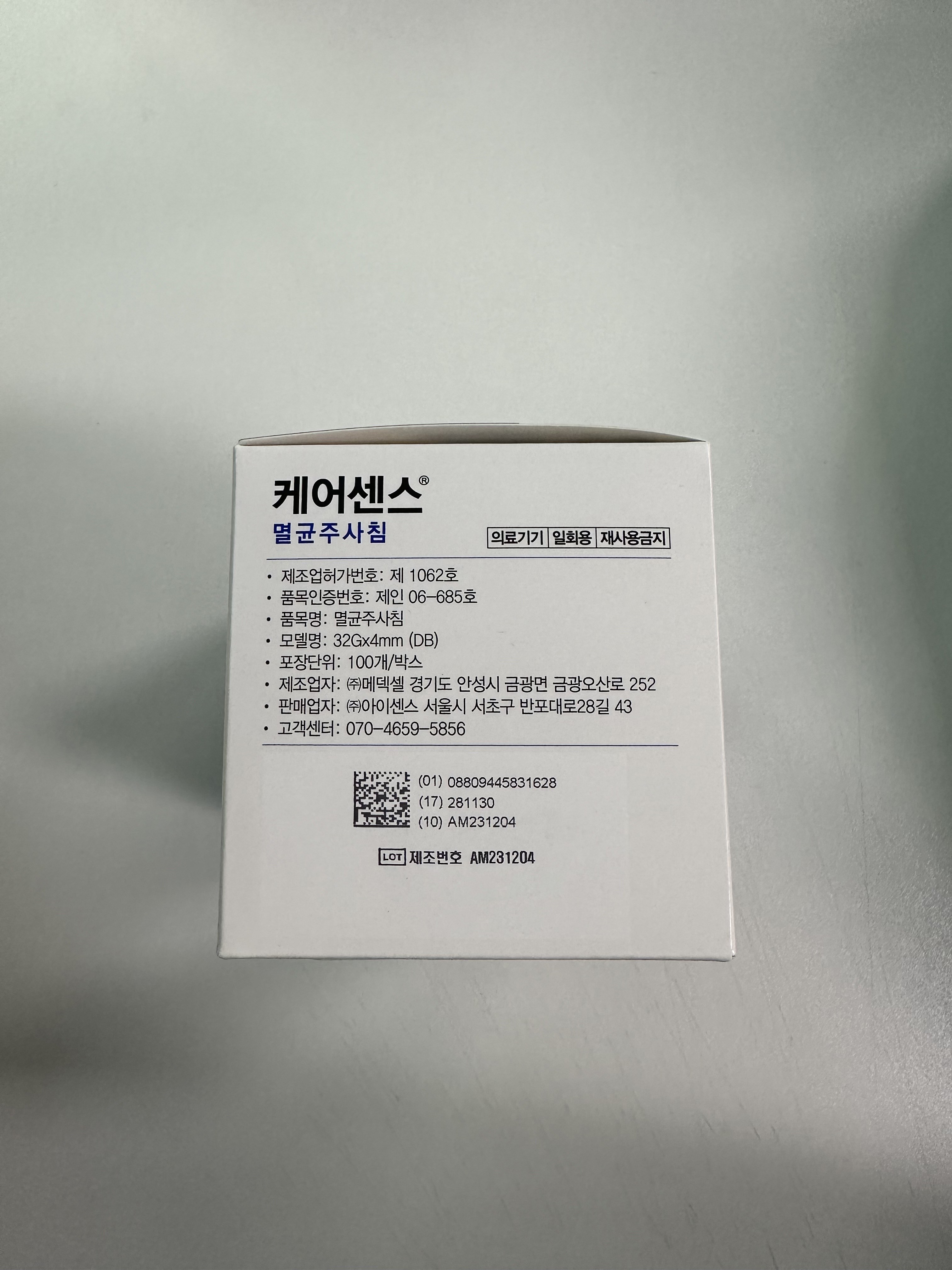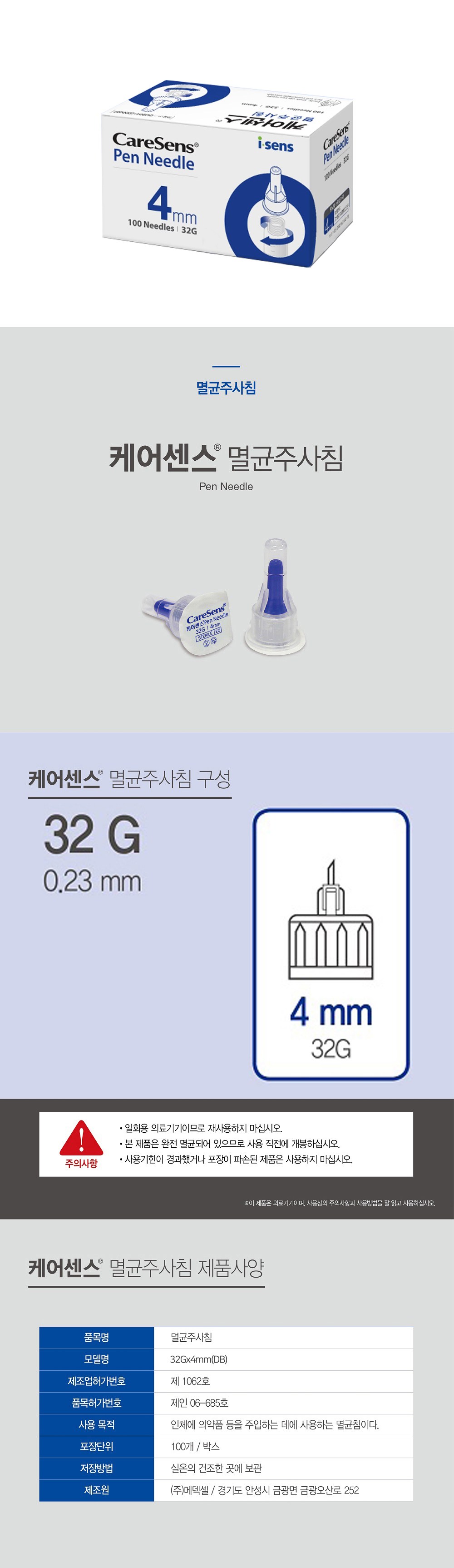 | 품명 및 모델명 | 멸균주사침 / 32Gx4mm (DB) | 허가∙인증∙신고번호 (의료기기법에 따른 허가∙인증∙신고 대상 의료기기에 한함) | 품목허가번호 : 제인06-685호 |