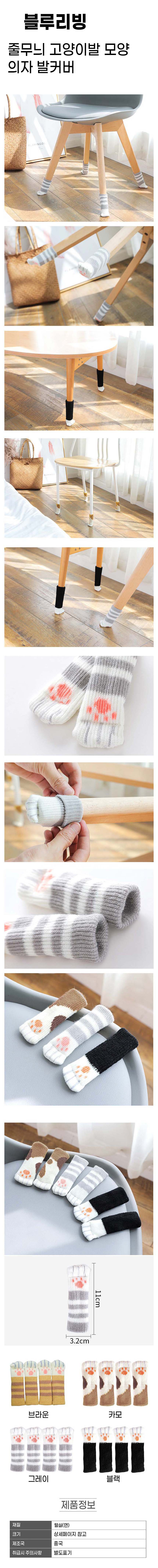 블루리빙 줄무늬 고양이발 모양 의자 발커버 4p