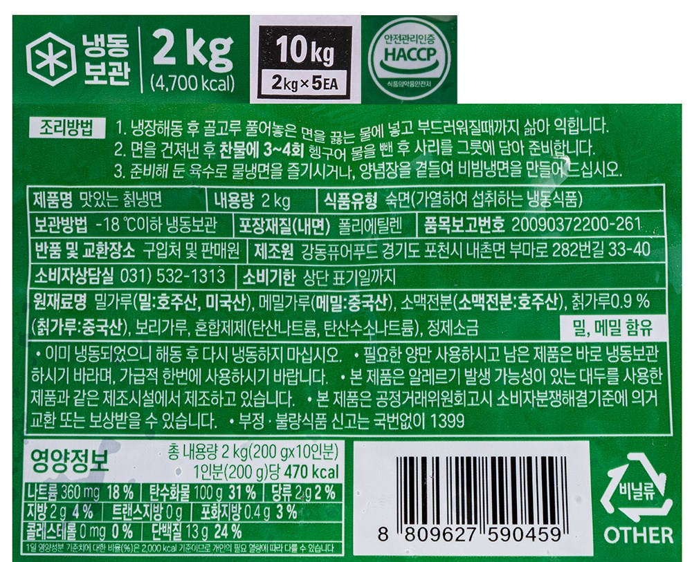 | 포장단위별 내용물의 용량(중량), 수량 | 2kg x 5개 | 원재료명 및 함량 | 컨텐츠 참조 |