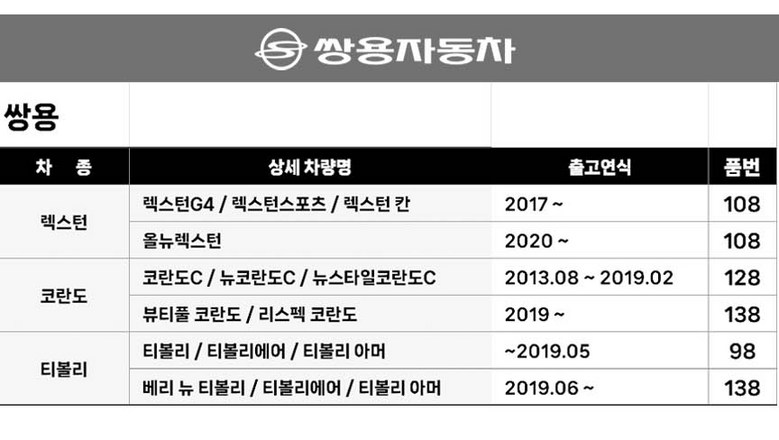 | KC 인증정보(자동차관리법에 따른 자기인증 대상 자동차부품에 한함) | 해당사항 없음 | 제조자(수입자) | 주식회사 대한카필터 |