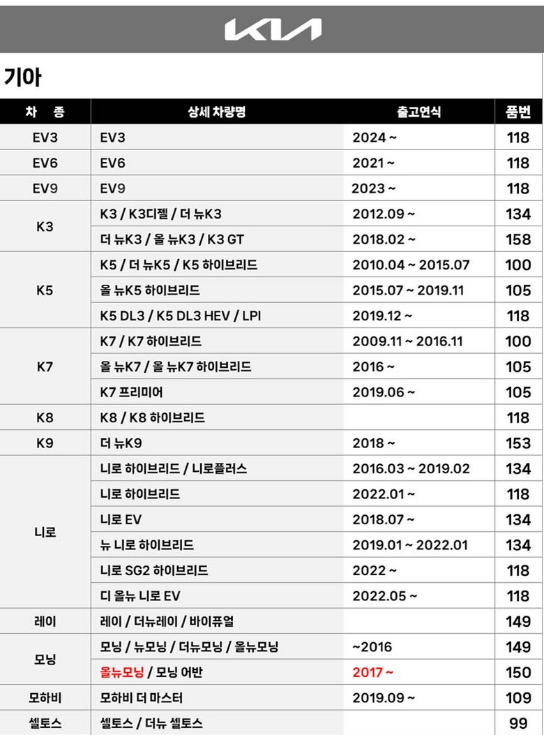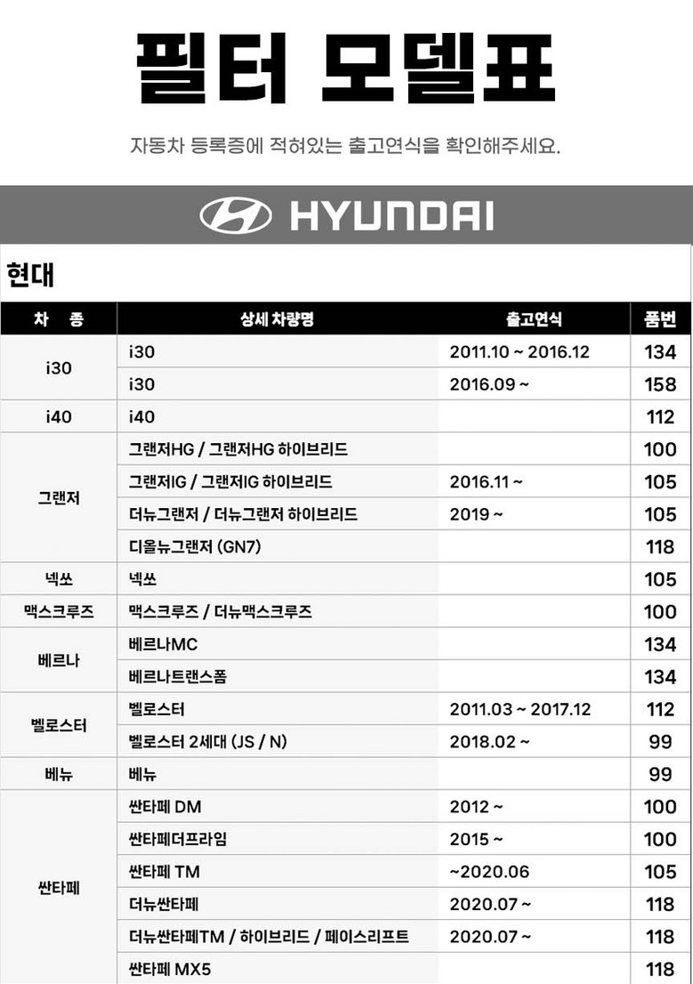 내 차량에 맞는 필터번호를 반드시 확인 후