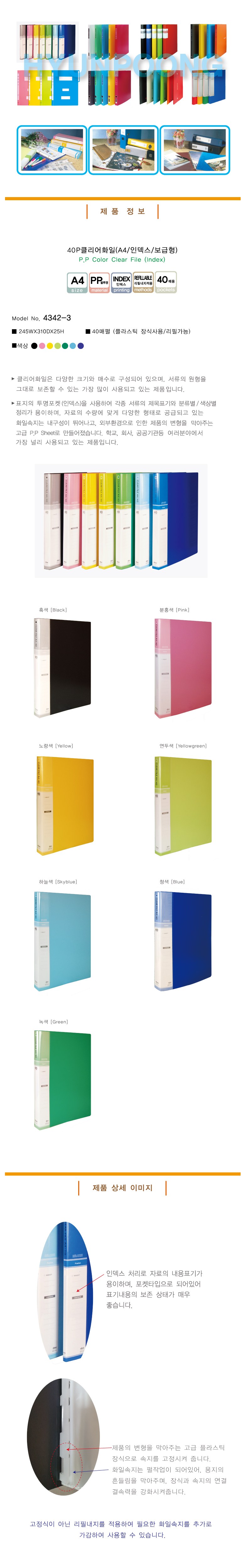 | 품명 및 모델명 | 클리어화일 인덱스 | 인증/허가 사항 | 해당없음 |
