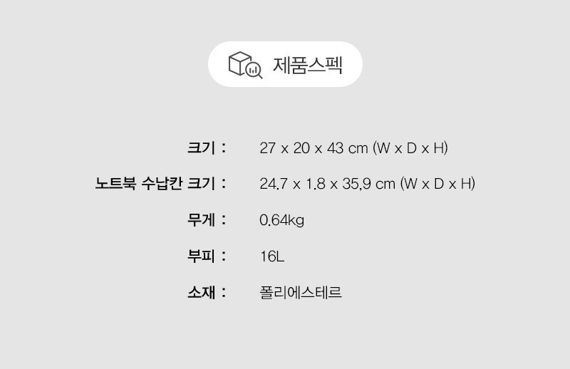 | 종류 | 백팩 | 소재 | 컨텐츠 참조 |