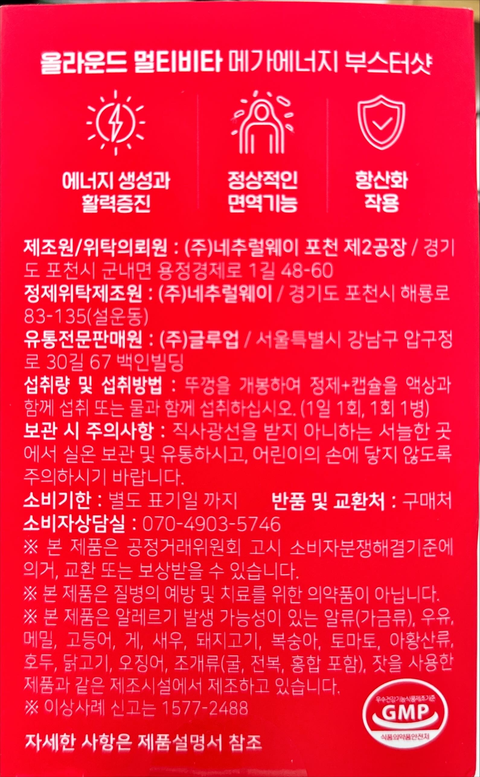 | 제품명 | 컨텐츠 참조 | 제조업소의 명칭과 소재지 | 주식회사 네추럴웨이 포천 제2공장 / 경기도 포천시 군내면 용정경제로1길 48-60 네추럴웨이 2공장 |