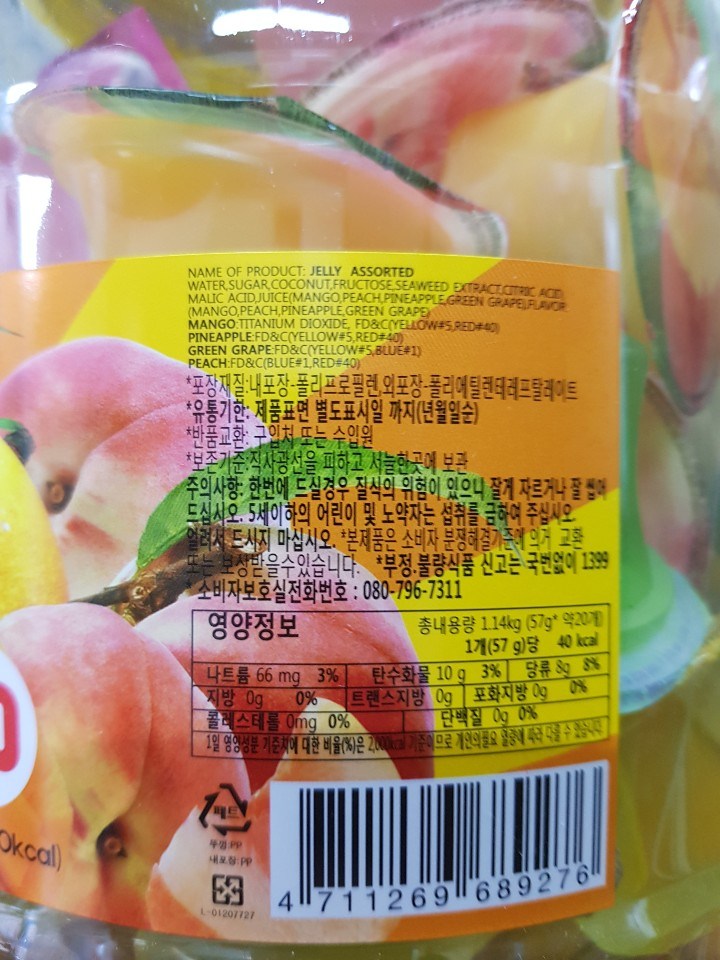 | 제품명 | 젤리어소티드 | 식품의 유형 | 캔디류 |