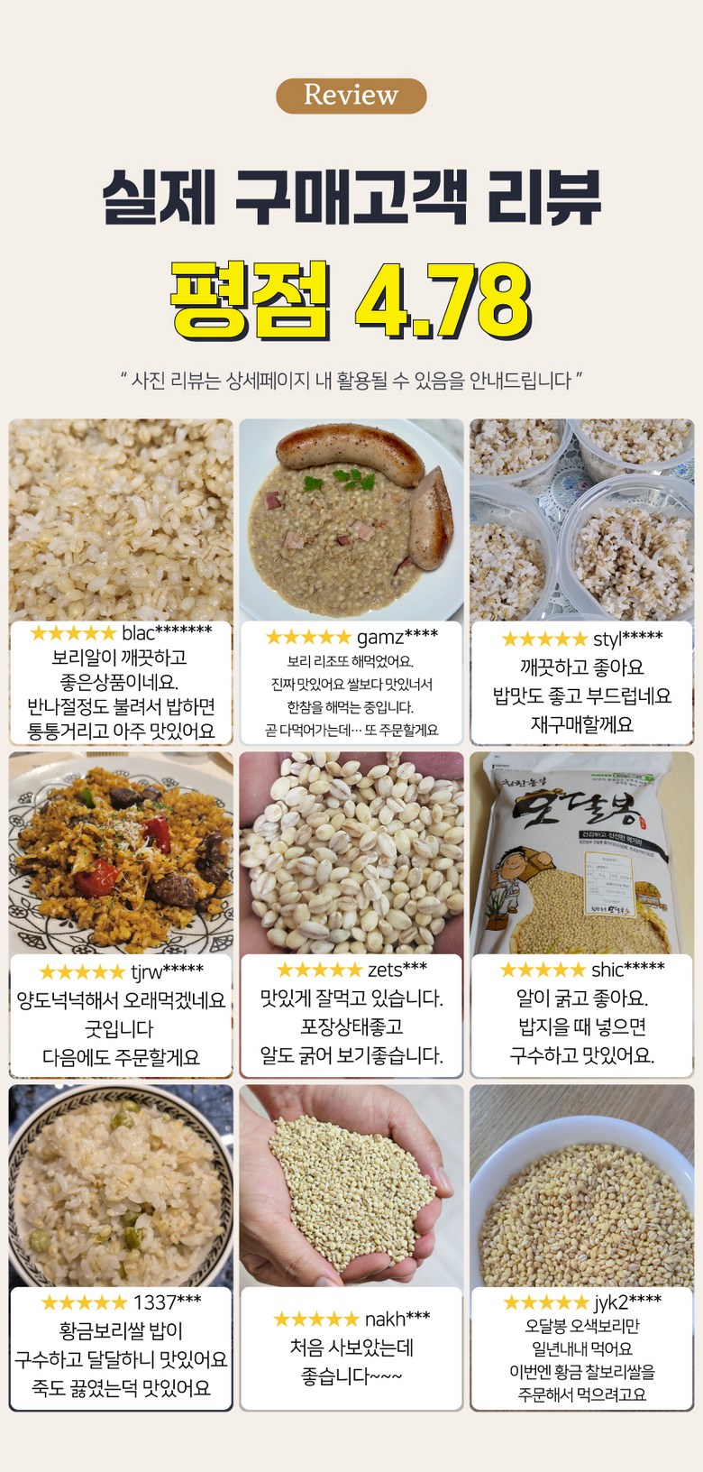 - 잡곡 종류: 보리