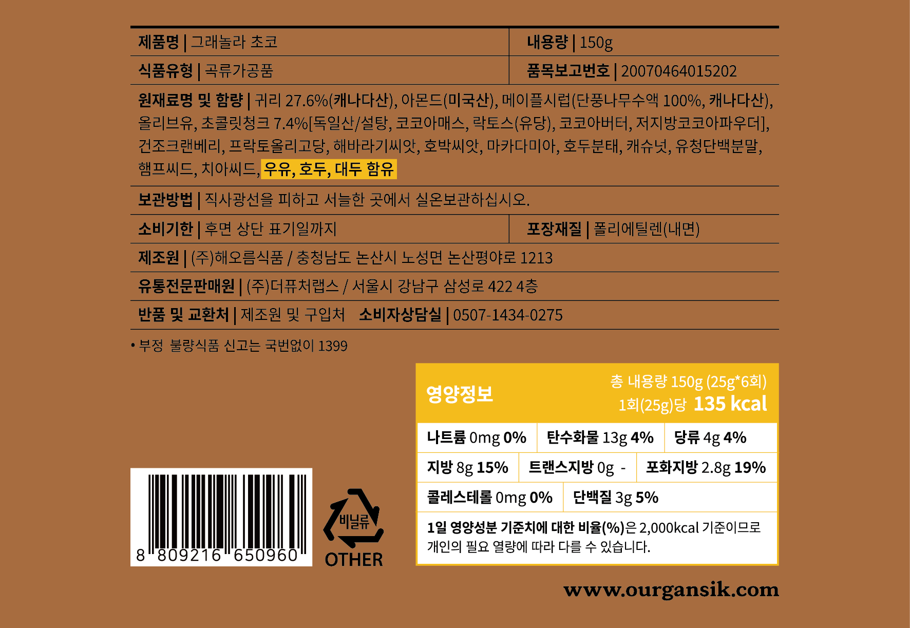 | 포장단위별 내용물의 용량(중량), 수량 | 컨텐츠 참조 | 원재료명 및 함량 | 컨텐츠 참조 |