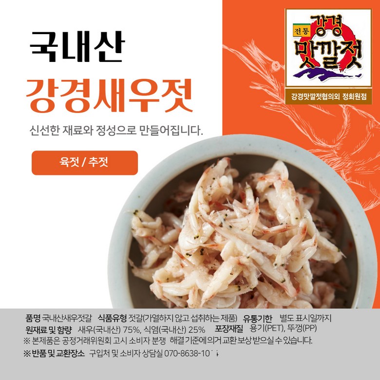 | 제품명 | 강경 새우젓 | 식품의 유형 | 새우젓 추젓 |