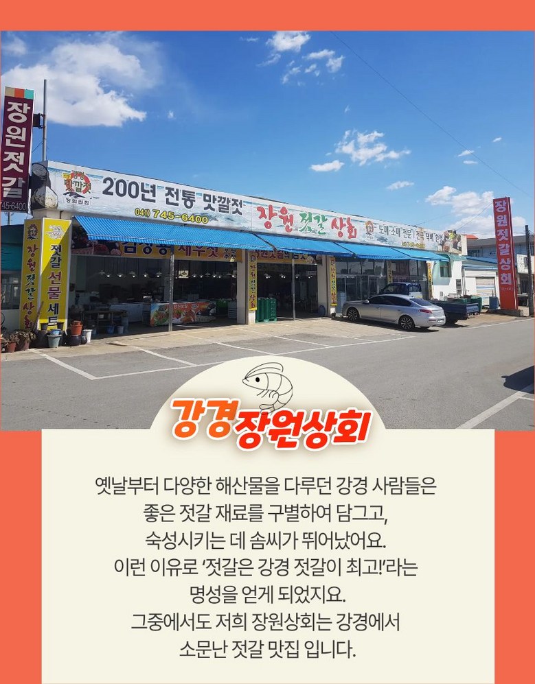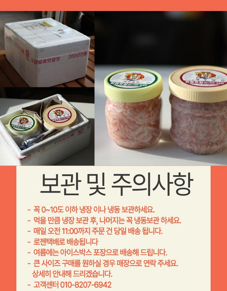 | 생산자 및 소재지 | 충남 논산시 강경읍 젓갈단지장원상회 | 제조연월일, 소비기한 또는 품질유지기한 | 제품별도표시 |