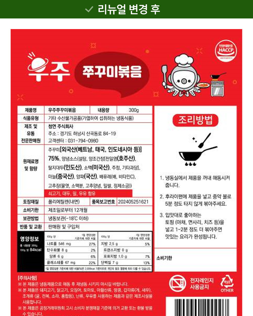 | 포장단위별 내용물의 용량(중량), 수량 | 300g x 5개 | 원재료명 및 함량 | 컨텐츠 참조 |
