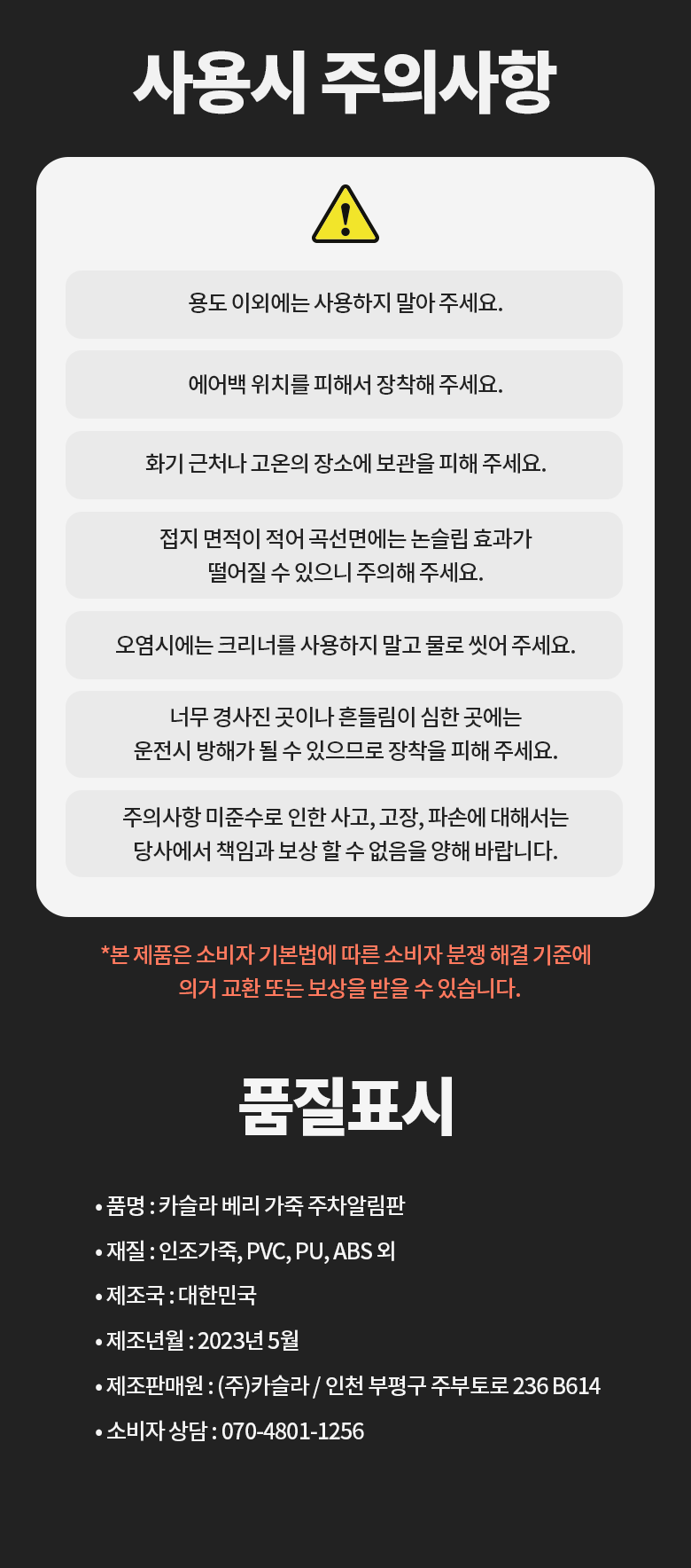 다만, 판매자의 제시사항이 관계법령보다 소비자에게 유리한 경우에는 판매자 제시사항이 적용됩니다.