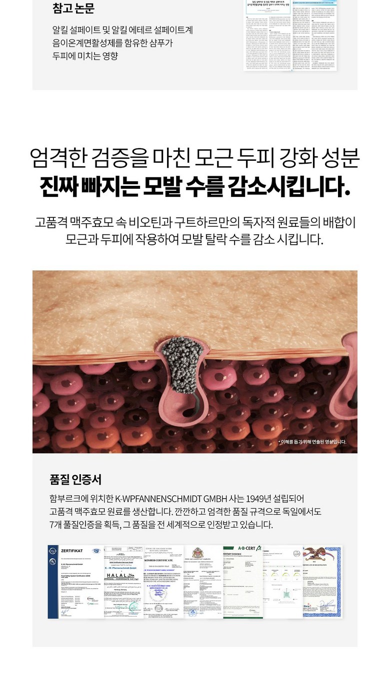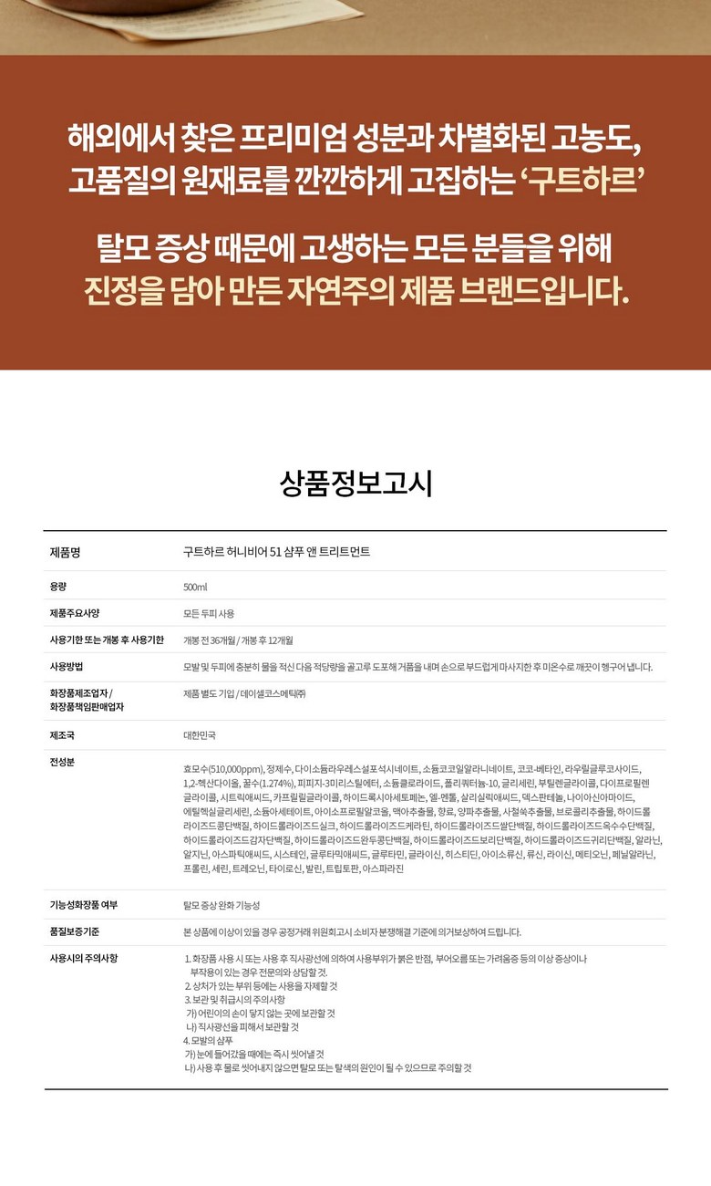 | 용량(중량) | 500ml | 제품 주요 사양 | 모든 두피 사용 가능 |