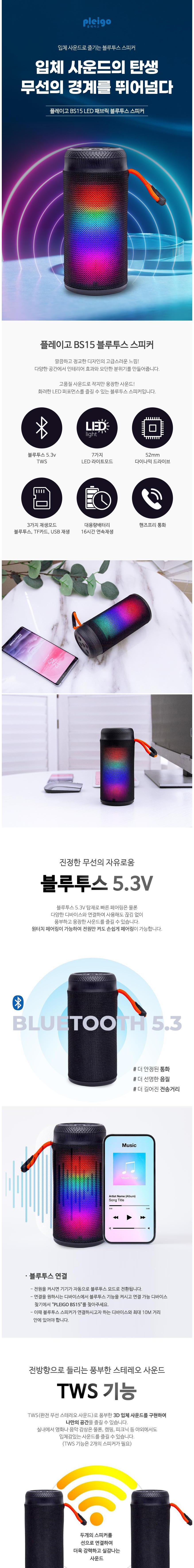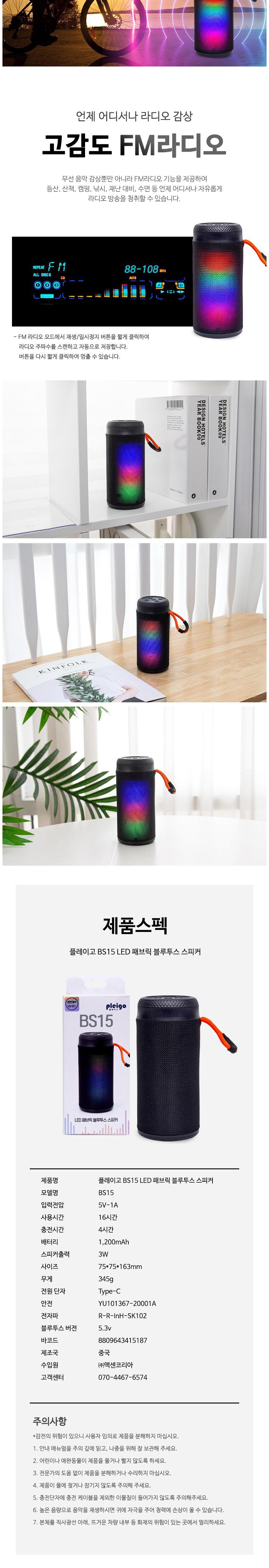 | 품명 및 모델명 | 플레이고 TWS LED 패브릭 블루투스 스피커/BS15 | KC 인증정보 | 스피커: R-R-InH-SK102, 배터리:YU101367-20001A |