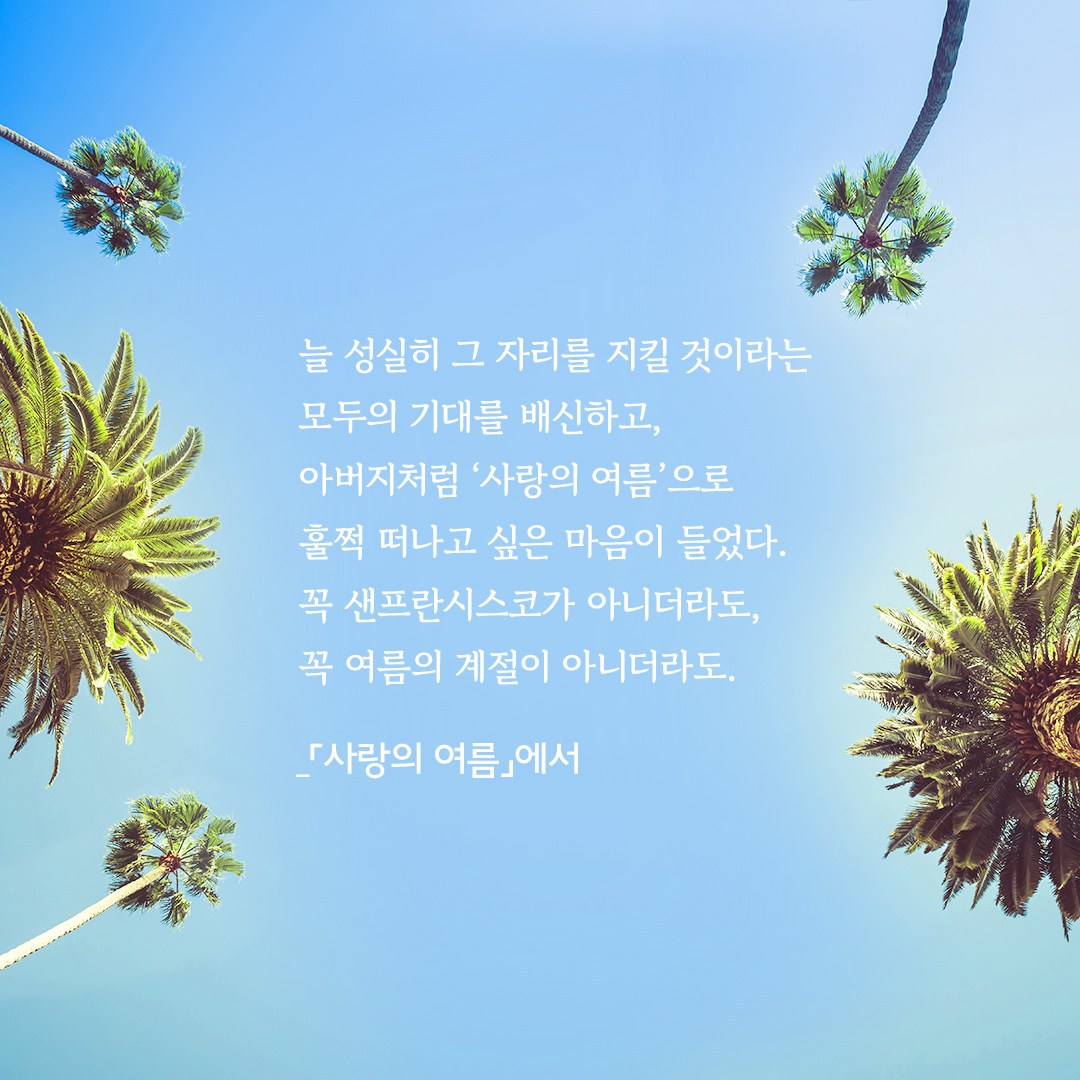훌쩍 떠나고 싶은 마음이 들었다. 꼭 샌프란시스코가 아니더라도, 꼭 여름의 계절이 아니더라도.”