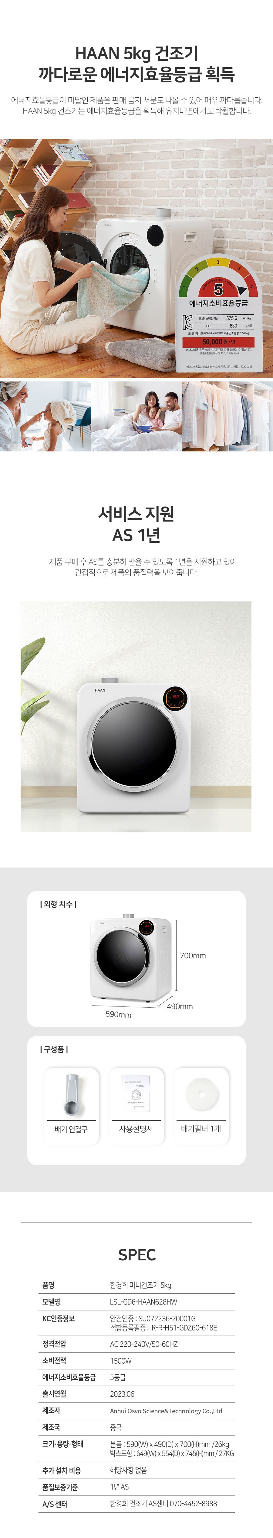| 품명 및 모델명 | 한경희 미니 빨래건조기/ LSL-GD6-HAAN628HW | KC 인증정보 | SU072236-20001G/R-R-H51-GDZ60-618E |