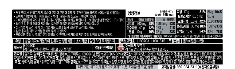 | 제품명 | 오뚜기 미트콤보고구마크러스트피자 | 식품의 유형 | 컨텐츠 참조 |