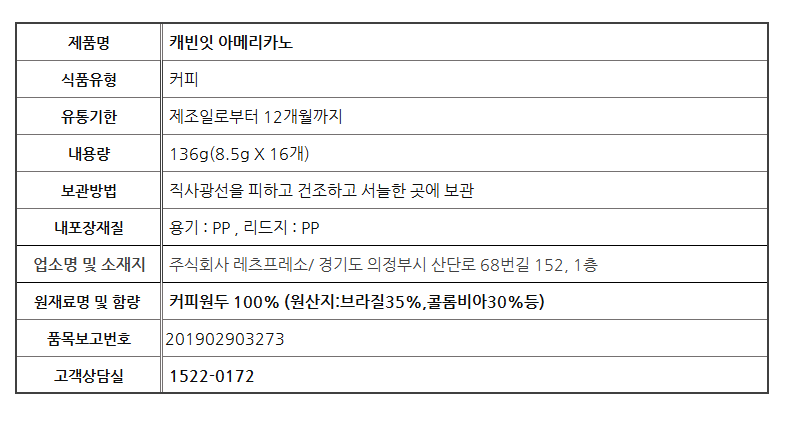 | 포장단위별 내용물의 용량(중량), 수량 | 136g, 4개 | 원재료명 및 함량 | 컨텐츠 참조 |