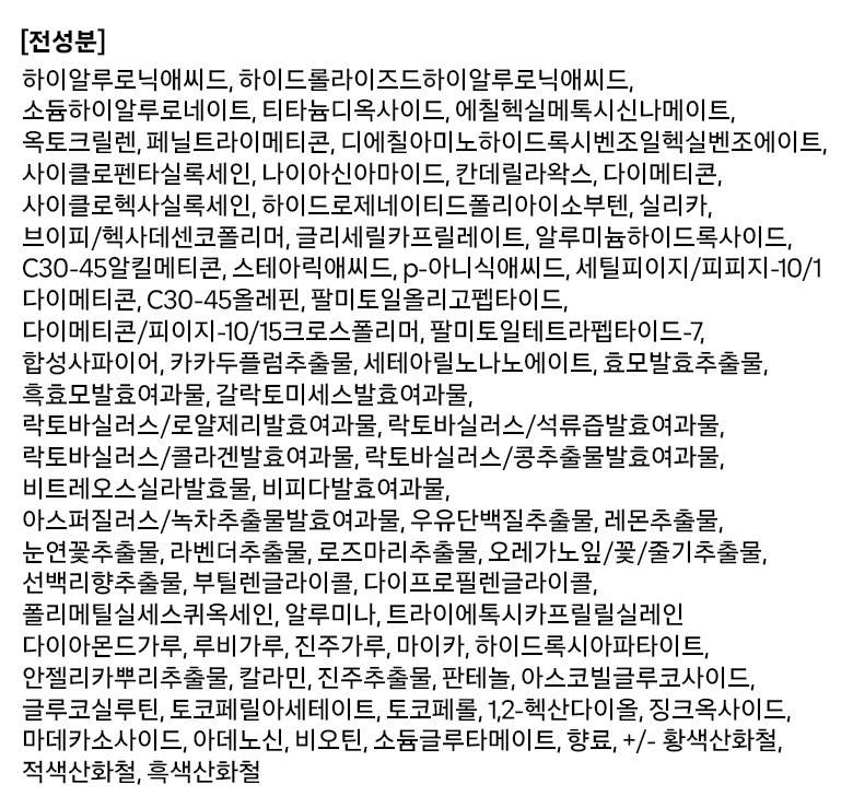 | 화장품제조업자, 화장품책임판매업자 및 맞춤형화장품판매업자 | 컨텐츠 참조 | 제조국 | 대한민국 |