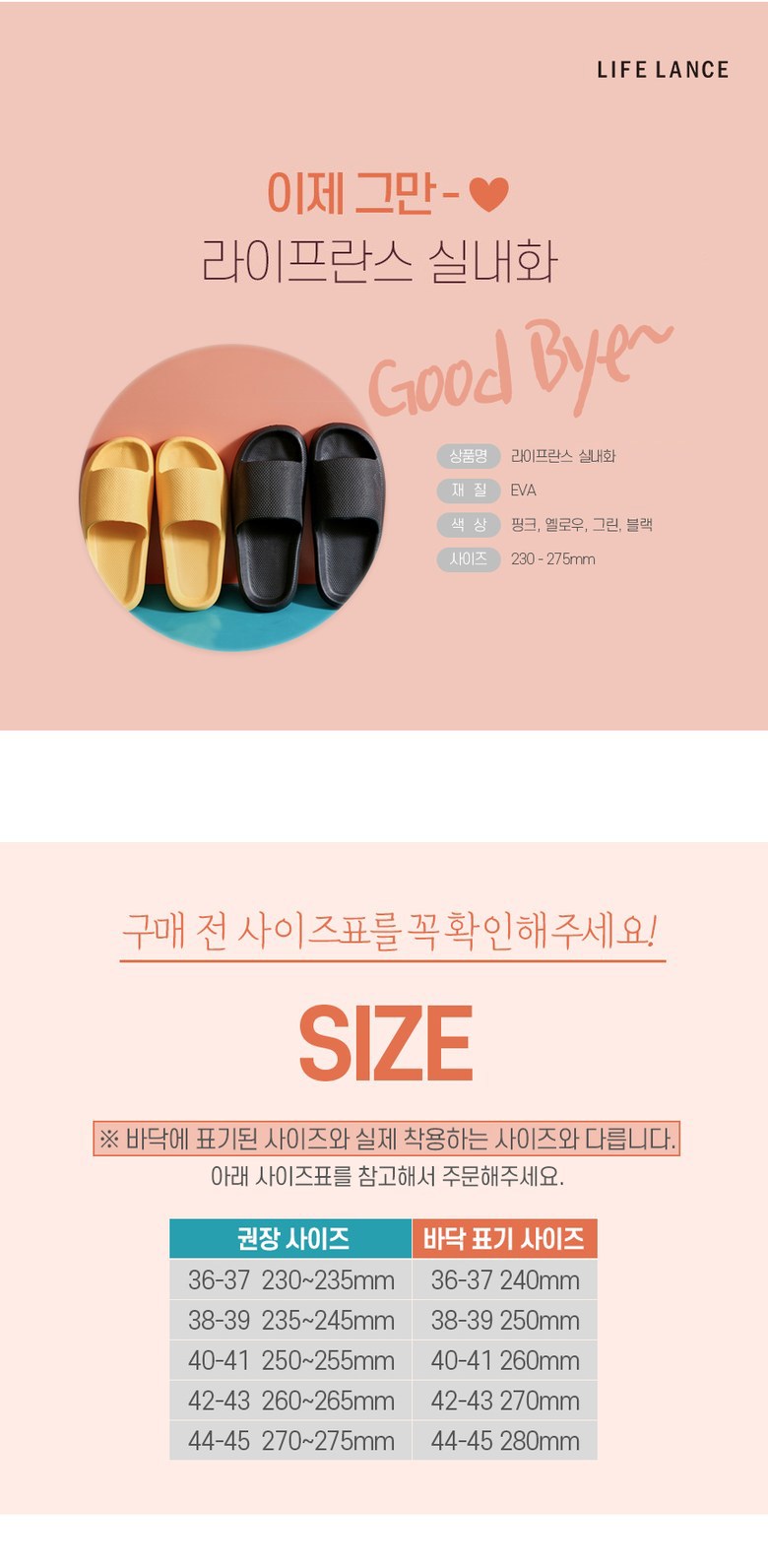 | 품명 및 모델명 | 라이프란스 EVA 사무실 실내 푹신한 쿠션 슬리퍼 | 인증/허가 사항 | 해당없음 |