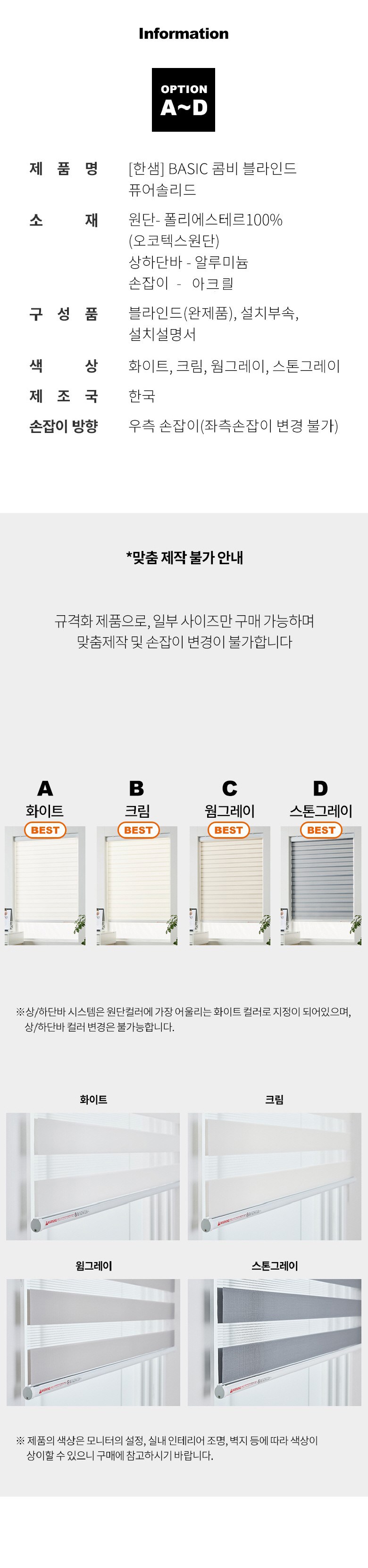 | 품명 | 한샘 BASIC 콤비 블라인드 퓨어솔리드 | KC 인증정보 | 유 / KC마크 |